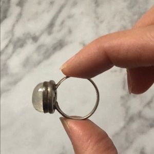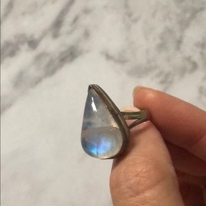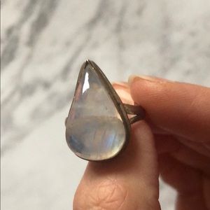 This ring has a beautiful one of a kind teardrop centerpiece! It’s iridescent in the light and adds to any outfit!