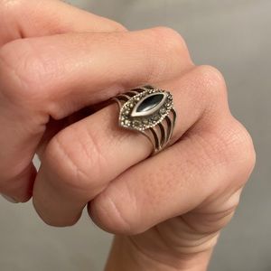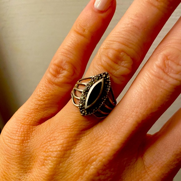 Gorgeous sterling silver ring# black onyx- markasite chips.