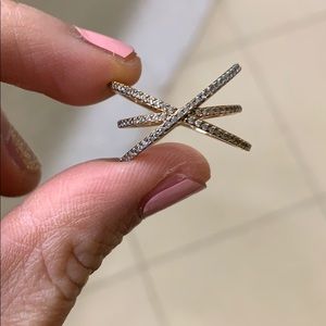 Beautiful ring that is subtly tri-toned with gold, rose gold, and silver. Fits like a size 8.