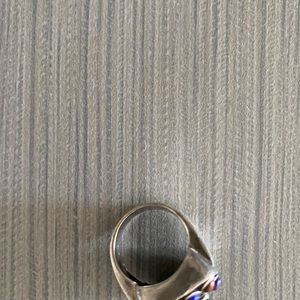 Authentic silver ring with colored stones around the black center square. One of the green stones chipped off slightly but still cute 925