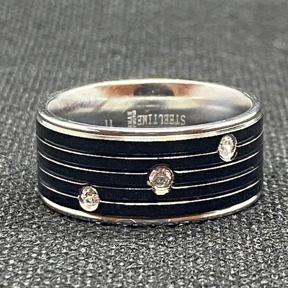 Stainless steel 3 CZ band ring