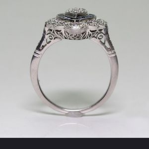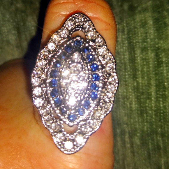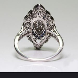 Antique Art Deco 925 Sterling Silver Ring with CZ diamonds and Sapphires
