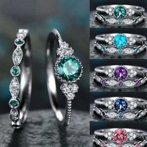 New 2Pcs/ set cubic zirconia elegant and exquisite ring color purple size 6 .