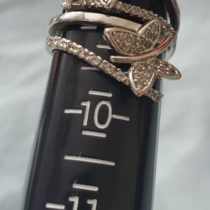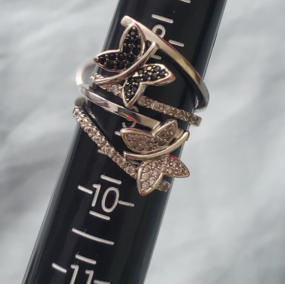 Size 10 ring super cute butterflies wrapped around each other I think it's a great thumb ring. Sterling silver marked with little black diamonds and white diamonds.