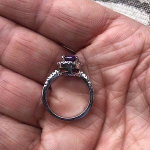 Dainty Silver Ring with CZ & Purple Center Stone