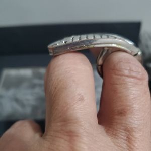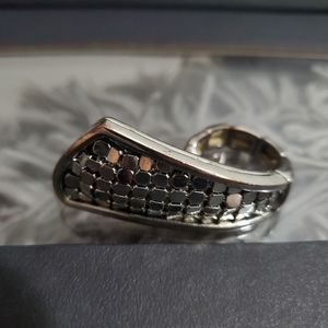 Cool silver high fashion ring. About size 8. Stretch band. You will love this piece. Makes any outfit cool!