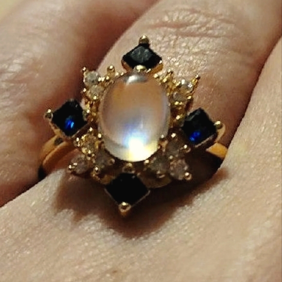 Signed Woman 14k plated Sapphire moonstone Ring Size 8. Brand new, never worn.