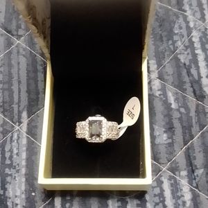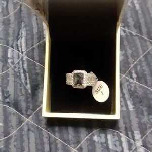 Peermont white gold plated Lab created Blue Colored Topaz, size 7