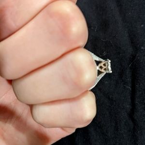 Comes with original box and the tag plate explaining it's make (don't have that on me right now) 9 real diamonds (I believe 1/2 karat) on top and 9 going down each side. Metal is platinaire which has very good life. Size 7.5 original size, has never been altered/resized. May have original receipt as well but I think it is wornout, original price was $2500 on sale. I've had it a few years. Cleaned regularly and only worn on occasion because it was too big for me.