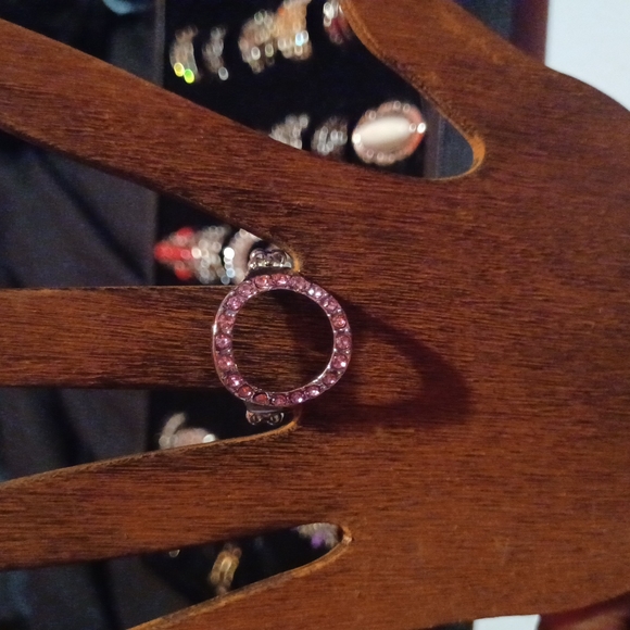 this is a silver and pink bling out stretch band ring the diamond bling bling is Pink and it is beautiful all Paparazzi jewelry is lead and Nickel Free and only five bucks