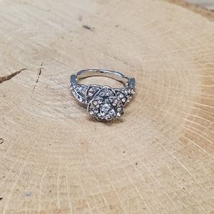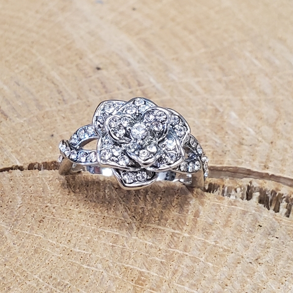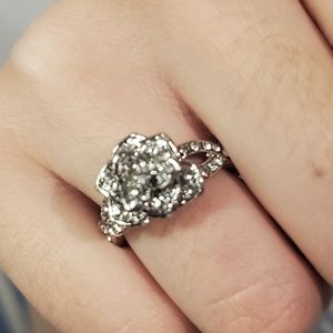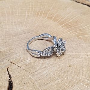 zircon rose cocktail ring, silver