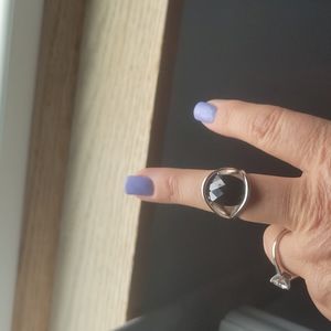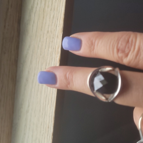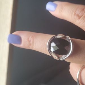Lia Sophia black oval stone in pretty silver setting, size 7.5, gently used