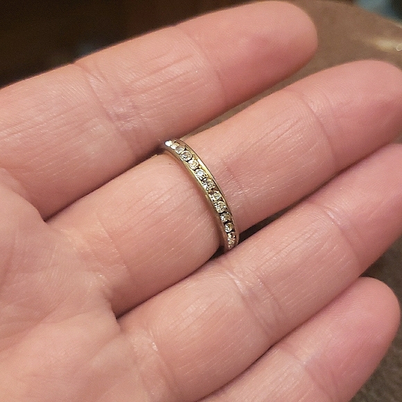 simply beautiful band. size 7. not stamped but I've had this ring a long time and it's never turned my finger green.