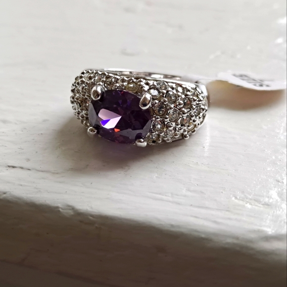 Beautiful and sparkly fashion jewelry amethyst look alike stone and diamond ring. Never worn, size 7