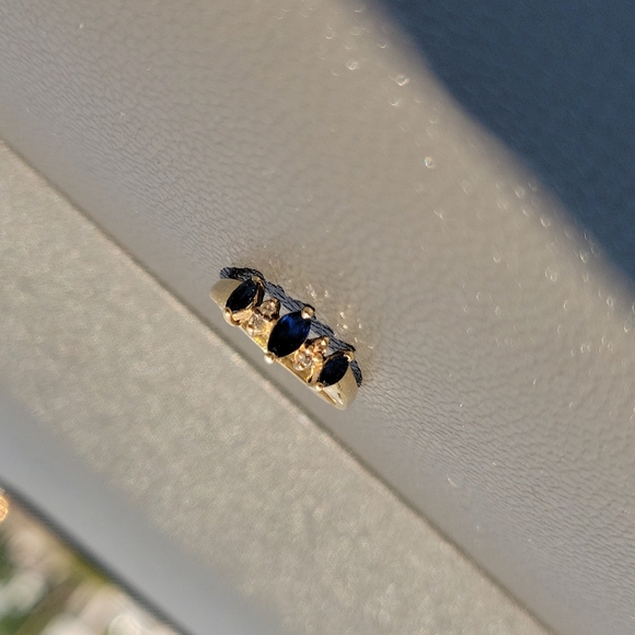 gorgeous 14 karat yellow gold ring, with diamonds and sapphires, size 4, vintage