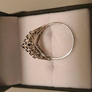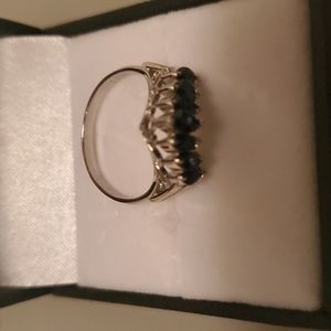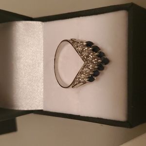 V ring Platinum 900, sapphire 1.00, Diamond 0.09 cts, 5.4 grams.