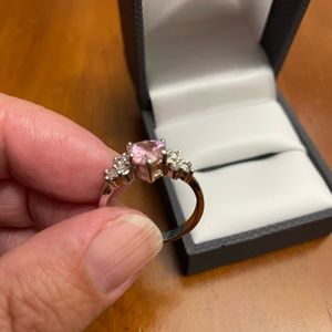 Heart shaped pink stone with fake diamonds size 8