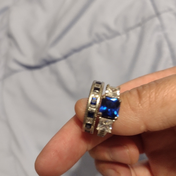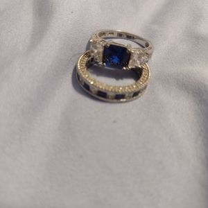 sterling silver cubic zirconia sapphire wedding set. two rings very beautiful