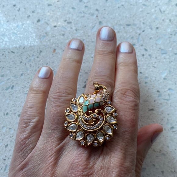 Gold plated ring , enamel with stones , adjustable size This is one of the kind ring , not to be found anywhere .. totally a gem