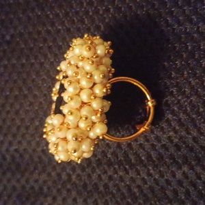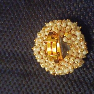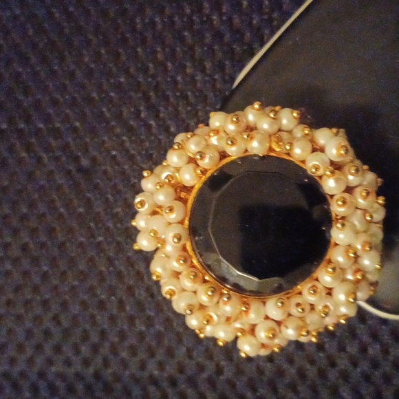 Adjustable Size Ring White And Gold Beads And Black Stone Not Gold