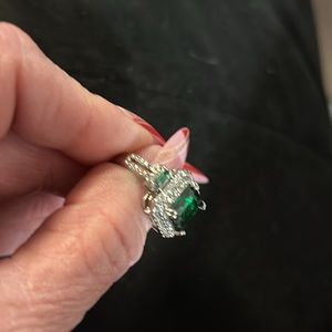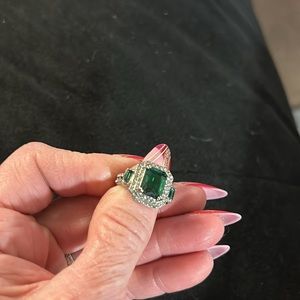 Beautiful Tourmaline Ring with genuine diamond accents. Closest to an actual emerald & an actual gem. Set in 925 sterling silver size 7