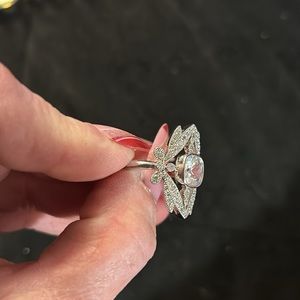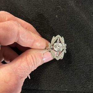 Cocktail fun ring new big stone in the center & a butterfly with open wings on each side silver size 10