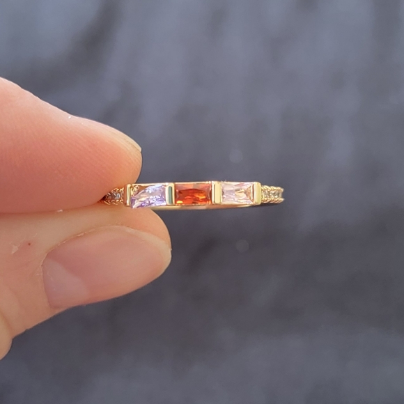 Brand new ring with purple, pink, and red crystals. Size 6. High-quality 18k rose gold plating, waterproof, rustproof. Will last forever. 16