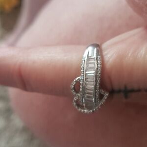 heart band ring. lab created diamonds. rhodium overlay. size 8 no stones missing