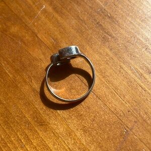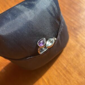 Purple amethyst, clear zirconia. Light scratches on silver.