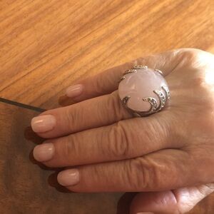 Silver ring. Rose quartz with cubic zirconia around. very elegant and unique .
