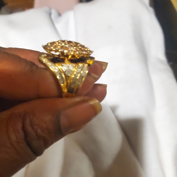 14kt/ 3ct authentic gold ring. natural white and champagne diamonds.