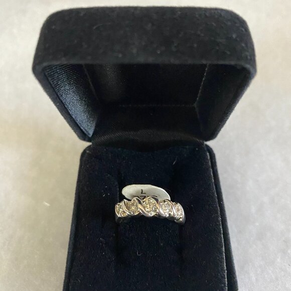 This is a silver-plated band with 5 CZ's across the top of band. Size 7 Never been worn, still has size tag attached.