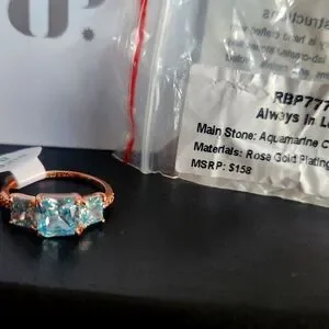 RBP7776 Always in Love Aquamarine Cubic Zirconia Rose Gold Size 8