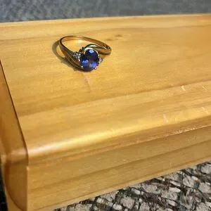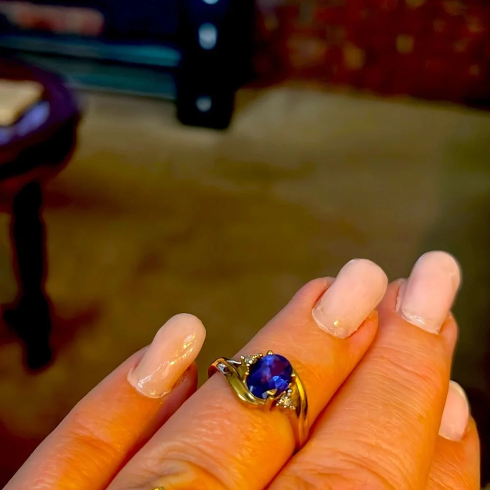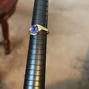 10 kt yellow gold tanzanite and diamond ring size 8