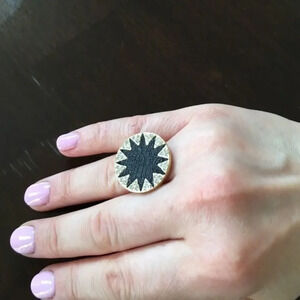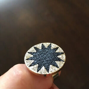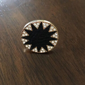 Ring similar to House of Harlow,gold tone metal,white rhinestones,black leather,size is adjustable