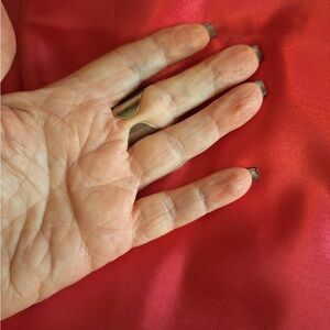 This is a Shy Siren beauty!!!! A large metallic gun metal crystal ring. Set in gunmetal adjustable strong material. Worn maybe twice. Can be worn on different fingers! So gorgeous in person!!!!!