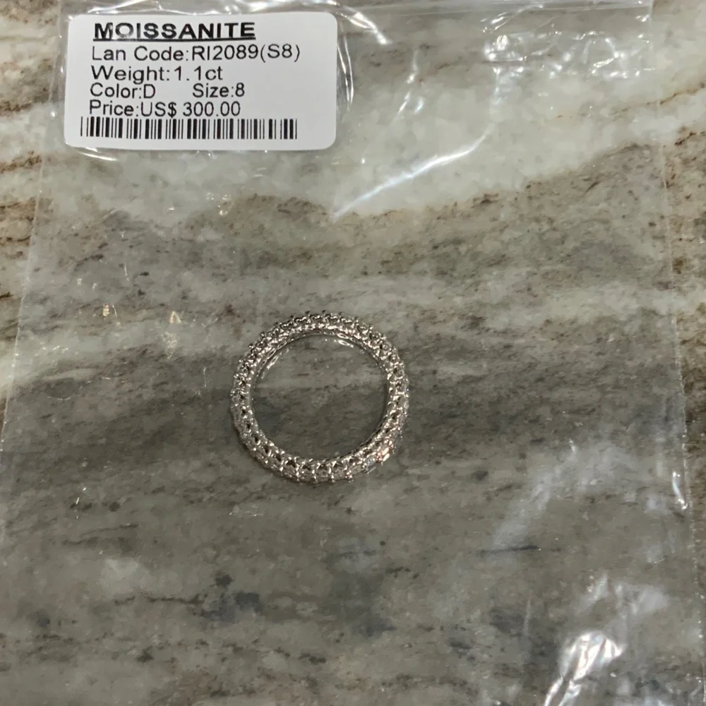 Brand new beautiful size 8 ring moissanite diamond ring that wraps all the way around the ring that comes with a limited lifetime warranty and certificate of authenticity.