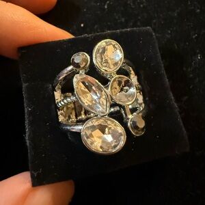 Bold silver ring with pearl accents. Perfect for a chic look.