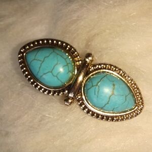 Fun faux turquoise ring in goldtone setting.