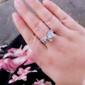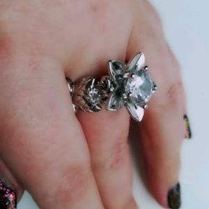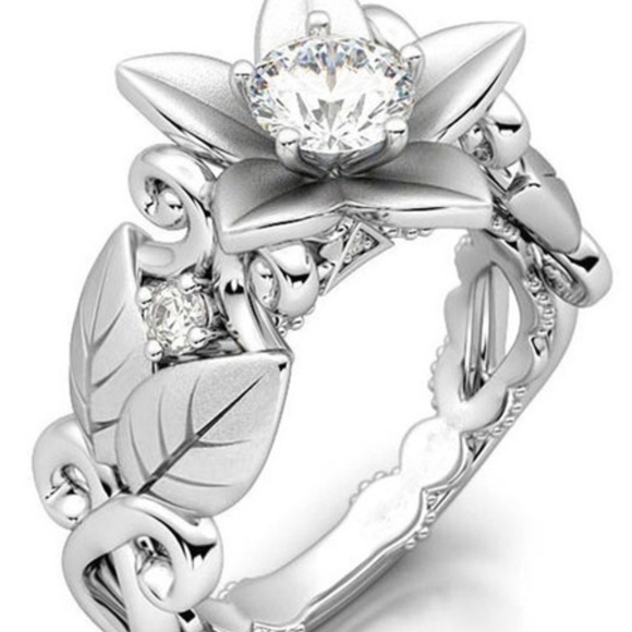 This ring is AMAZING in person, photos do it no justice at all. The lovely silver and features leafs giving way to the lovely flower with a gorgeous AAA zircon white gem center. The sun catches this thing and bursts rainbows of color. Bring yourself a little Spring at any time of year! We are proud that buying from Wicked Wonders saves you 75 to 400% over other retailers. Lead-free silver zinc alloy with AAA zircon stones.