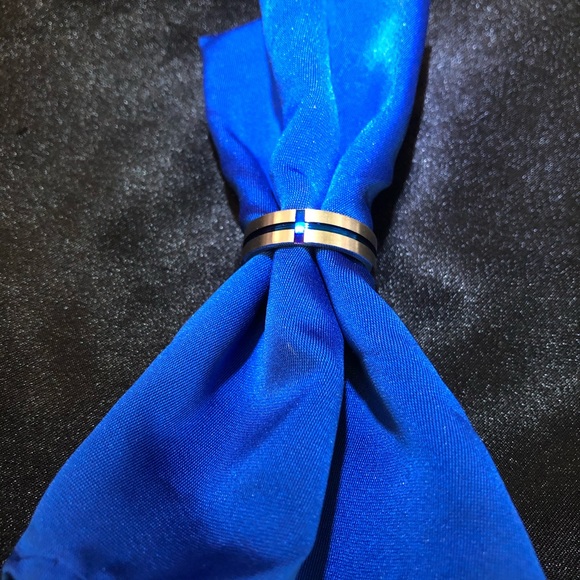 Men’s/Women’s stainless steel with sapphire blue accent, ring size 10