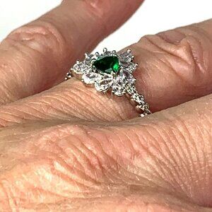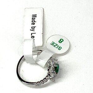 Ring Bomb Party Lab Created Emerald & Diamond Cocktail Ring Rhodium Plated Sz 8