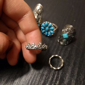 Six beautiful brings, some with turquoise coloring.