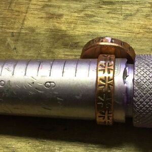 Copper and Calcite Ring, size 10, NEW, Handmade. Copper ring with thick hand cut bezel and stamped design in the band. The stone is a round cabochon of Calcite, mined in Mexico. This mine is now closed, so this is one of the few remaining pieces available. The colors are simply stunning. New from my Florida studio. Made in the USA.