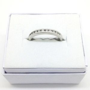 Amazing!! White gold ring with twelve diamonds, each approx 0.01ct, 1.25mm. Channel set half eternity. Brilliant sparkle.