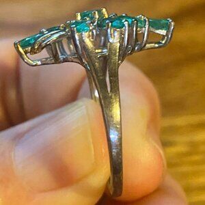 Ring Emeralds Size 8 9 Stones 4.82 Carats Sterling Silver 925 SIS Vintage