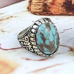 Ring Fashion Retro Silver Color Bohemia Ring Natural Stone Punk Jewelry Size 10 unisex