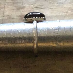 Garnet and Sterling Silver Ring, size 9, NEW, Handmade, Artisan. Beautiful cabochon of deep red garnet with the traditional purple blush. This is a stunning stone, so I put it in a simple setting to let the stone be the star of the piece. Size 9. The silver bezel setting is serrated, and a simple half round sterling silver band. New from my Florida studio. Made in the USA.