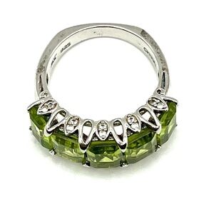 Ring Green Peridot Anniversary Band Signed HT 925 size 6 Cocktail Ring