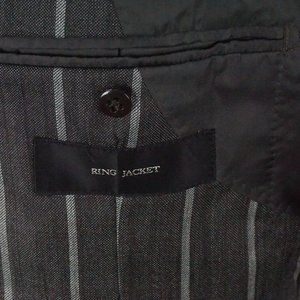 Ring Jacket Gray Wide Striped Silk Blend 2 Pc Suit Jacket Pants Sz 38 BRAND NEW